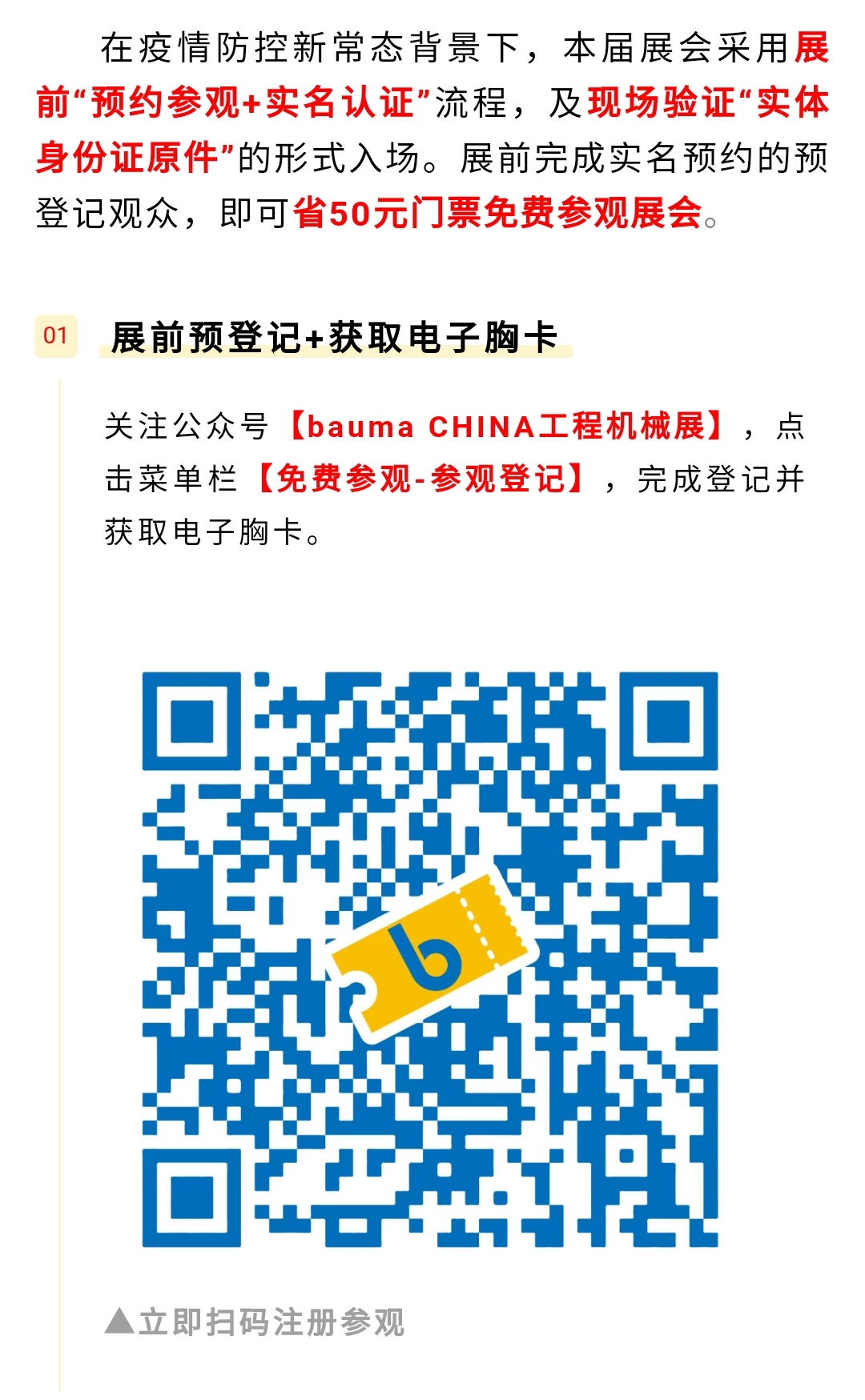 為了營造更便捷、舒適、高效的觀展體驗,磊蒙特此準備了貼心的「bauma CHINA 2020參觀攻略大全,囊括展會時間、地點、實名預約、展示內(nèi)容、入場流程、展館交通等海量信息。干貨滿滿,記得先收藏哦~